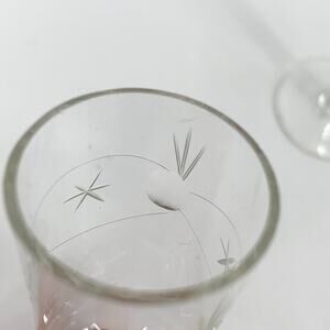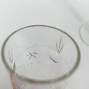 VTG MCM Set of 2 Apertif/Sherry/Port/Shot Glasses Starburst Etched Glass Retro