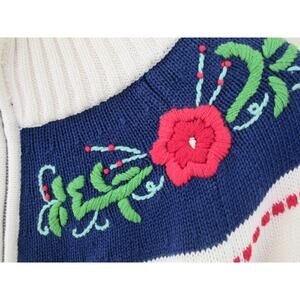 VTG MCM Talbots Red Floral Embroidered Zip Front Cardigan 100% Cotton size LP