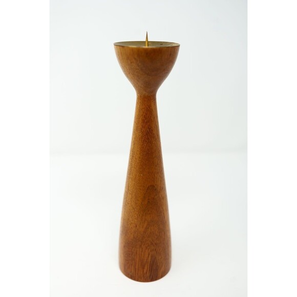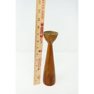 VTG MCM teak mid-century modern candlestick candle holder 9"