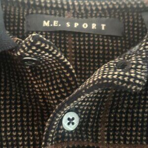 VTG M.E. Sport Men’s Velour LS Polo Pullover Crosshatch Pattern Blk/Brn Size L