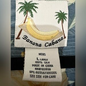 VTG MEN'S BANANA CABANA FRENCH BLUE WITH FLORAL PRINT 100% SILK HAWAIIAN SHIRT L