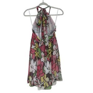 VTG MILLY OF NEW YORK 100% Silk Halter Drop Waist Dress Pink/Green/Yellow Y2K Size 0