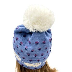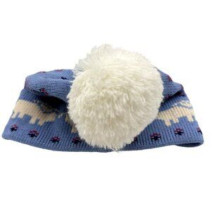 VTG MIMI'S SKI HATS Blue Sheep Pom Beanie Hand Knit Wool Vermont USA Winter Cap