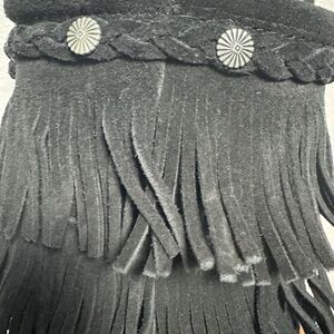 VTG MINNETONKA Suede Black Leather Fringe Mid Calf Moccasin Boots Sz 7 Festival