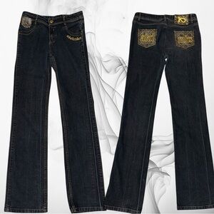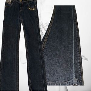 VTG MKS Women’s 6 Dark Blue Bootcut Mid Rise Monogram Leather Pockets Denim