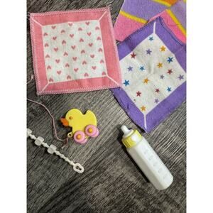 Little Tabby is marked 1989 and Baby Cotton Candy 1984. There are a ton of accessories including diapers in the diaper box and four blankets. The pony’s are in good condition. They have a couple of marks and the hair needs to be brushed through. Otherwise excellent. Please refer closely to pictures and feel free to reach out with any questions.