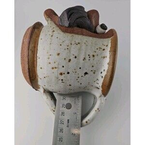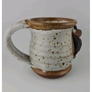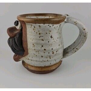 Vtg MMS Mahon Ugly Funny Face Stoneware Pottery Mug of 3D man with mustache.