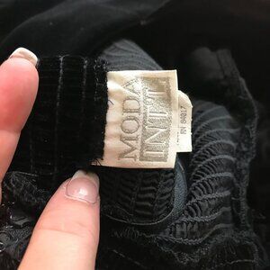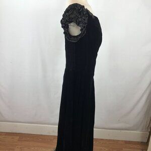 VTG MODA INT'L - WOMEN'S 14 - BLACK SHORT RUFFLE SLEEVES VELOUR DRESS