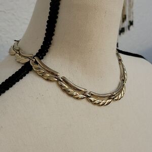 VTG MONET Silvertone Egyptian Cleopatra Castlecore Scallop Collar Bib Necklace