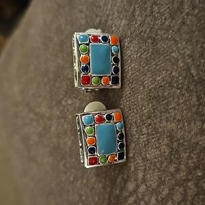 VTG MX 1980s Rainbow Southwestern Rectangle Clip-on Earrings