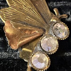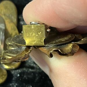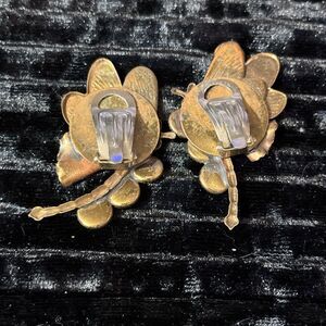 VTG Made In Italy Mixed Metal Brass Copper Rhinestone Butterfly Clip On Earrings
