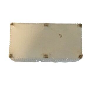 Crafted in a rectangular cachepot style, this piece features a raised roses-and-beaded (hobnail) design across all sides, adding depth, texture, and elegance. Perfect for use as a planter, centerpiece, or display piece, it embodies MCM character with a cottagecore, farmhouse appeal.