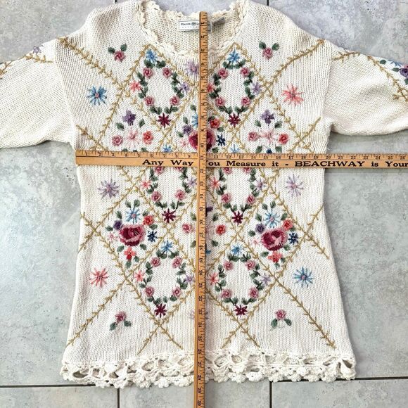 VTG Maggie Lawrence Chunky Handknit Floral Sweater Size M