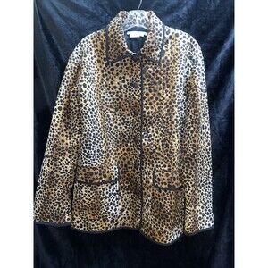 VTG Maggy London 100% Silk Button Cheetah Leopard Blazer Jacket Top Size 6