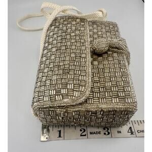 VTG Magid Beaded Checkerboard Purse Crossbody Boxed Silver/Gold Evening Bag