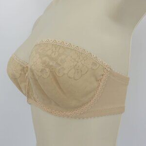 VTG Maidenform 32C 4155 Pretty Shapely Strapless Beige Underwire Floral Lace Bra