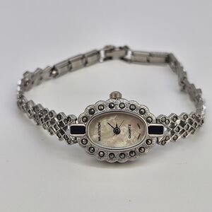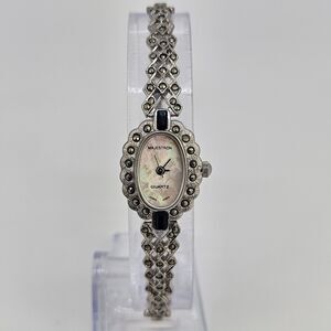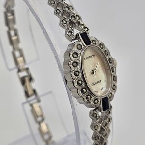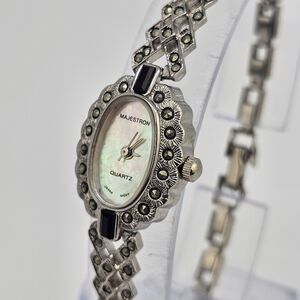 VTG Majestron Watch Women 18mm Marcasite MOP Oval Dial 7" New Battery