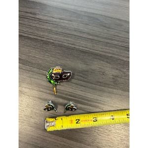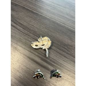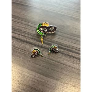 VTG Mardi Gras Mask Feathers Brooch Pin w/ Matching Earrings NOT MARKED