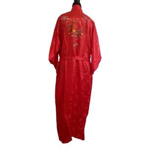 VTG Marianne von der OstenWomensRed Embroidered Kimono Sz XL Belt Robe Drsg Gown