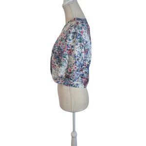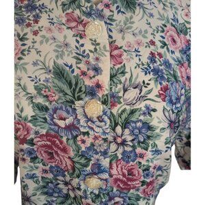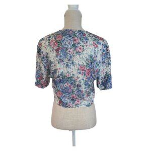 VTG Marilyn Womens Floral Button Up Waist Crop Blouse Top Sz Small Rose Buttons