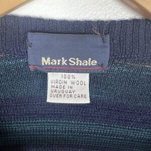 VTG Mark Shale Wool Sweater sz L Stripes Ducks Hunting Grandpa Cabin Novelty