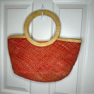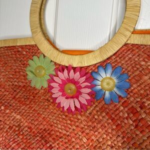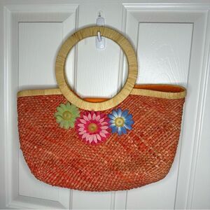 VTG Marld Orange Woven Straw Floral Medium Sz Handbag Bohemian Retro Spring 90s