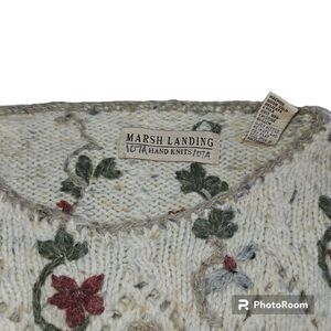 VTG Marsh Landing Sweater Womens Large Beige Red Floral Wool Angora Hand Knit