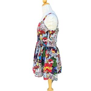 VTG Marvel Comics Fit and Flare Mini Skater Dress Spider-Man Hulk Thor Colorful