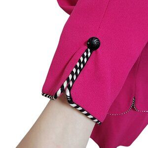 **Please see pictures that show discoloration in the armpits, button loops that are worn, slight discoloration on the black and white trim on the collar, and a repair on the skirts's lining **
