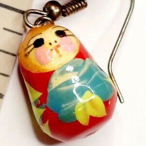VTG Matreshka Doll Earrings Handmade Sheppard Hook