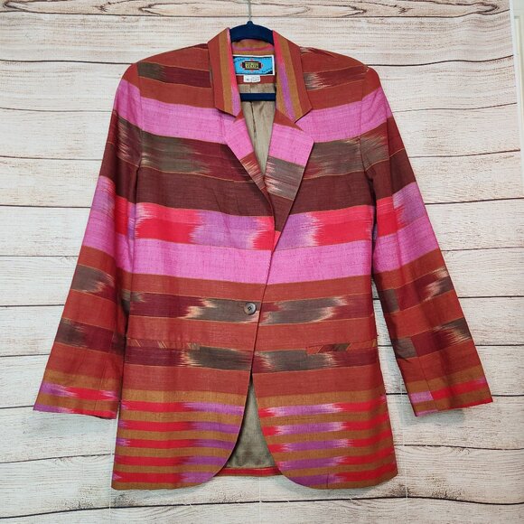VTG Maurizio Ramini Blazer Jacket Womens Size M Aztec One Button Padded Shoulder