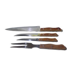 VTG Maxam Precision Hollow Ground Stainless Steel Wood Handle 3 Knives & 1 Fork- 4 pc set