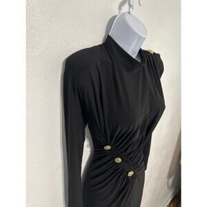VTG Maxi Ruched Side Old Hollywood Glam Dress 38/40 Black Stunning Romantic
