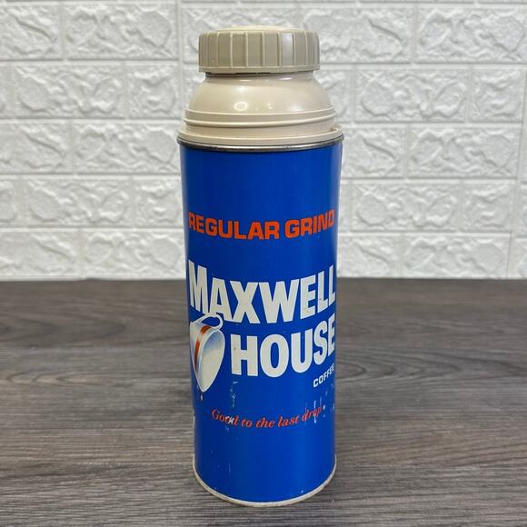 Vintage Maxwell House Coffee Advertising Thermos-Graphic Print Regular Grind, Good to the Last Drop Slogan, Insulated, Without Cup Lid, USA Made.