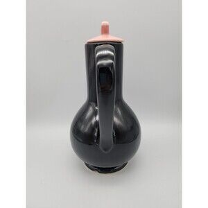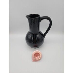 Vintage McCoy Pottery Carafe Pitcher Vase High Gloss Black Ebony with Pink Lid. It has a chip on the bottom of the base. It is a visible, if you are looking for it. See photos. Otherwise in good condition considering age.