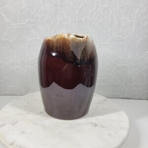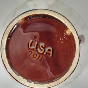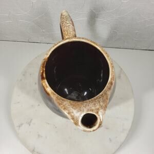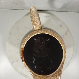 Charming vintage McCoy Pottery iced tea pitcher, perfect for adding a touch of retro style to your kitchen or collection! This lovely pitcher stands approximately 8 inches tall and features a beautiful brown glaze with a unique drip design and ice lip.