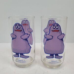 These Grimace Collector Series tumblers feature the iconic McDonald's character in vibrant purple. The glasses are suitable for fans of vintage memorabilia or fast-food enthusiasts. They add a touch of nostalgia and fun to any collection or display.