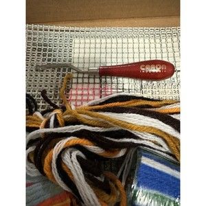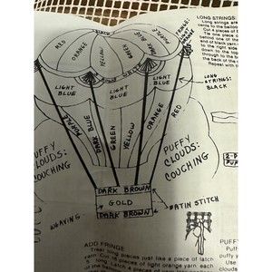VTG McNeill LARGE Latch Hook Rug Kit 1983 No. 7611 Balloon II Wall Decor Hanging. Comes in original vintage box. Includes large hot air balloon pattern grid, lots of yarn pieces, instructions, plastic needle, Caron Indonesia latch hook, white puffy clouds cotton couching. Made in USA McNeill Needleworks & Crafts 1980, Family Activity Kit, Beginners Latchhook. Some of the yarn is loose (see photos), but I believe this kit is complete. Rare htf kit.