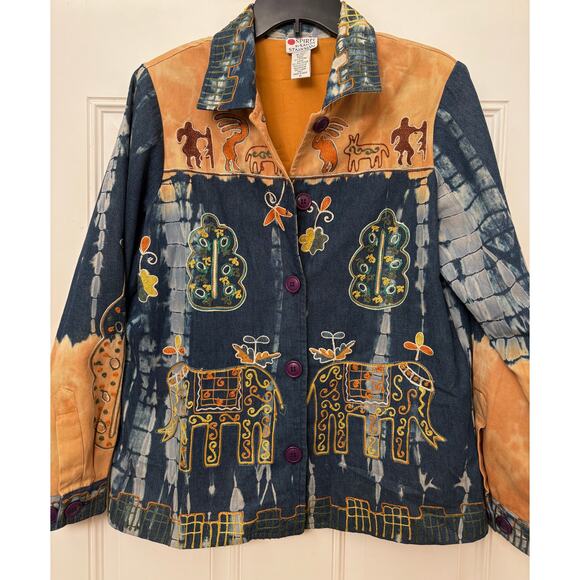 VTG Medium Sandy Starkman Embroidered Women's Jacket Elephants Cotton EUC