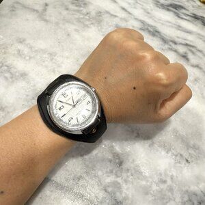 With a white dial, analog display, and a round shape, this casual wristwatch is perfect for replacement parts The watch does not come with papers or original box/packaging.