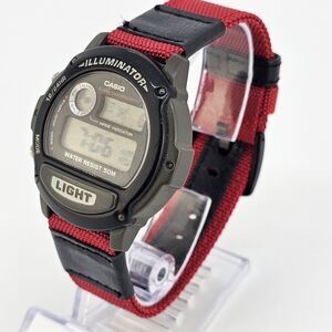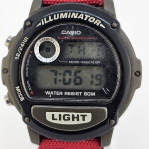VTG Men's Casio Digital Watch 44MM Gray Case New Red Black Canvas Bands