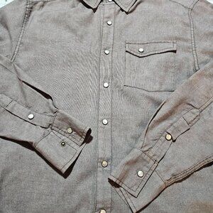 VTG Mens Casual LS Snap Pearl Button Shirt Med Taupe Work wear Normcore