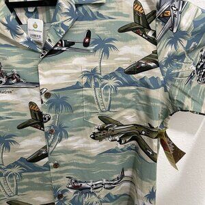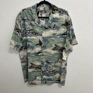 VTG Men’s Kalaheo Hawaiian B17 Flying Fortress Airplane Shirt Button Up Green L