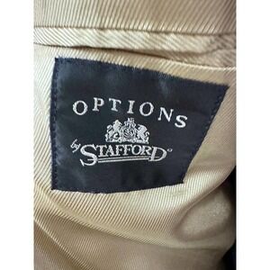 Vintage Mens Camel Hair Sport Coat OPTIONS BY STAFFORD. Lined, 2 interior pockets, 1 exterior, notched collar & shoulder pads. Assembled in Dominican Rep.