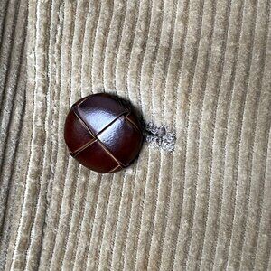 Minor stains on inside lining and loose stitching at left INSIDE pocket corners. See pictures before purchase