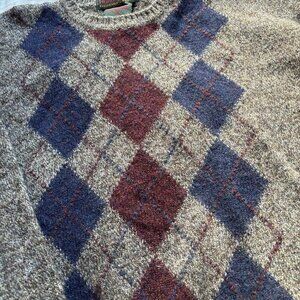 Vintage Lord Jeff Mens Plaid Sweater Shetland Wool Pullover Sz M Spun in Scotland Made In Ireland