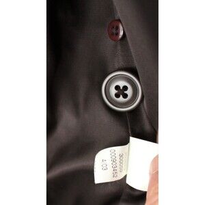 A brown thick heavy suede leather jacket features 3 buttons, giving it a stylish and sophisticated look. This outfit is perfect for a formal occasion or a professional setting. The high-quality fabric and attention to detail in the design are evident. This outfit exudes confidence and professionalism, making a strong statement.