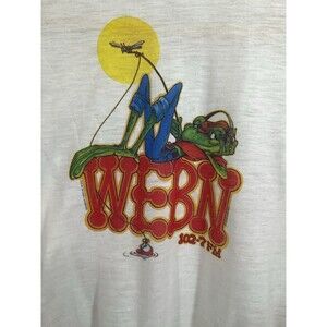 VTG Mens WEBN 102.7 FM Radio Station Fishing Frog T-Shirt S White 80s Cincinnati
