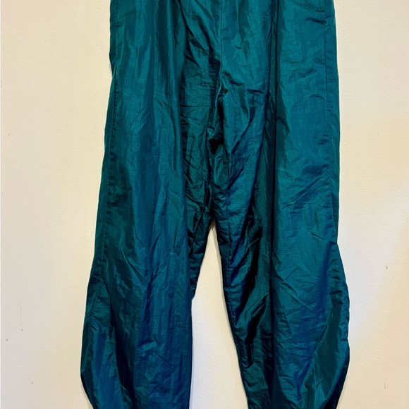 90s vintage wind breaker pants in turquoise blue color. Features back pocket and inner lining for insulation.