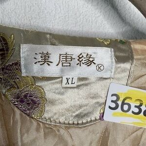 Vintage Merlion Asian Mandarin Silky Brocade Sleeveless Zip Sides Button Front Blouse Vest Top Women Size XL Gold